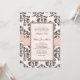Customise this elegant and pretty pink and brown lightly distressed vintage antique damask wedding invitation with a pink and white damask background and pink ribbon contrast stitch design. Design © Chrissy H. Studios, LLC. All Rights Reserved.