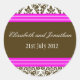 Pink and Brown Damask Wedding Sticker
