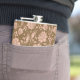 The flask itself is fine. It’s a cheap flask, obviously bought in bulk, however am prepared to overlook that. Given that it is a personalized item, I would have liked to have seen gift boxing instead of the generic packaging. Terrible printing, and/or quality. It’s a cheap, tacky vinyl. It is not cut straight and is also applied in a way that it is overhanging the bottom, causing the glue to catch on items and it will eventually roll and tear, damaging the wrap.