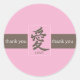 Pink and Brown Kanji Thank You 1.5" Round Sticker