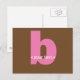 Pink and Brown Monogram - Letter B Postcard
