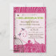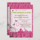 Vintage Love Birds Pink Fuchsia Hot Pink Wood Grain Brown Birdcage and Apple Green Text Wedding Invitations