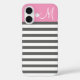 Pink and Charcoal Preppy Stripes Monogram Case-Mate iPhone Case
