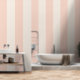 This wallpaper features a fun and bold stripe print in shades of blush pink and cream. Great for a children's bedroom or playroom, or anywhere you want to add a playful touch of whimsy.