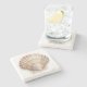 The coasters are gorgeous, a quality feel and heavy weight. They look like a precious archeological find. A rustic stone juxtaposed with a modern floral black and white print. I like the way the print goes slightly imperfect on the cut stone edges giving them a kind-of natural beauty.