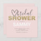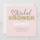 This modern square bridal shower invitation features your name set in a bold modern font with the word Bridal in handwritten calligraphy script typography and Shower in faux gold over a blush pink background with a cute hand drawn heart. The invite card reverses to a complimentary pale pink background. A modern choice for your Valentine's Day Bridal Shower or Brunch invitation suite. To see more of this contemporary stationery set visit DoTellABelle on Zazzle.