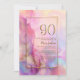 Invite your friends and loved ones to your 90th birthday celebration with this stylish gold framed pink invitation. The customizable text area in this invitation template allows you to include all the necessary details for your special birthday celebration, including the date, time, venue, and RSVP information. A variety of paper types and corner styles are available for your unique invitations, along with the option to download if you prefer a digital format.