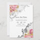 Pink and gold and silver floral diamond wedding save the date card against black.