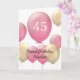 Personalised pink and gold 45th birthday card for her, which features pink and gold balloons on the front of this modern forty fifth birthday card.