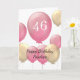 Personalised pink and gold 46th birthday card for her, which features pink and gold balloons on the front of this beautiful 46th birthday card. A unique birthday card keepsake for her.