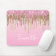 Pink and Gold Dripping Glitter Glam Name Mouse Pad