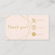 Show appreciation and boost engagement with this gold fun text enclosure card, perfect for small shops and online businesses. Featuring playful “Thank you!” lettering and chic geometric accents on a blush background, this insert is ideal for packaging customer orders and promoting your Etsy store. Gold coloured social media logos and dedicated spaces for web link handles let you connect easily with clients and showcase your brand’s personality. Add your own message, contact info, store address, or product details on the back for a personalised touch. Please note the gold effect is printed. For other social icons or customisation requests, simply reach out.