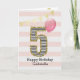 Pink and Gold Glitter 5th Birthday Girl Card