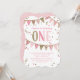 Stylish and playful first birthday party invitation featuring patterned banners with pink and faux gold glitter confetti. /// PART OF A COLLECTION /// ADDITIONAL AGES AVAILABLE ///