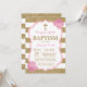Pink and Gold Glitter Baptism Invitation. Girl Baptism. First Communion. Christening. Child Dedication. Gold and White Stripes. Pink Floral Flower. For further customisation, please click the "Customise it" button and use our design tool to modify this template.