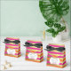 A wedding thank you favour bag with an elegant pattern composed of pink, orange and faux gold metallic horizontal stripes. Layered over top is a fancy white frame personalised with the bride and grooms names, wedding date, and thank you.