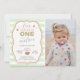 This adorable pink and gold one in a melon 1st birthday invitation is cute as can be! The gold sparkle accents adds some fun and flare while maintaining the sweetness you want for your little one's party. Simply add your party information to this card along with your favourite photo, and you have an adorable card that is sweet, delicate and chic!
