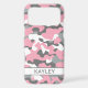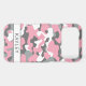 Customize this pink, gray and white camouflage iPhone 17 pro max case with your name in a trendy modern CAP font in gray on white. It's so modern, girly and trendy! Perfect for any country girl!