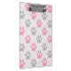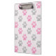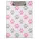 Cute pink and gray paw prints pattern clipboard