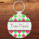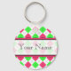 A keychain featuring a hot pink and lime green argyle background with hot pink trim. Personalise with your name over sheer centre section.