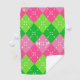 Personalised golf gear pink, green and white argyle. The argyle pattern has long been recognised as a classic design that has stood the test of time. The repeated diamond-shaped pattern evokes a sense of sophistication and elegance, adding a touch of refinement to golfing attire and accessories. The symmetry and precision of the pattern also align with the sometimes meticulous angles and shots of the sport of golf. Additionally, the combination of bold and contrasting colours within the argyle design creates visual interest and makes a statement on the green. Overall, the argyle pattern as timeless charm, aesthetic appeal, and ability to add a touch of style and personality to any golf gear. Colourful many shades of pink and green with white stitching argyle pickleball-themed gift for your pickleball-loving mum, dad, uncle, aunt, brother, sister, neighbour, grandpa, grandma, husband, wife, friend, or work colleague who won't stop talking about pickleball.