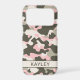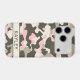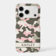 Customize this pink, green and cream camouflage iPhone 17 pro case with your your name in a trendy modern CAP font in dark green on cream. It's so modern, girly and trendy! Perfect for any country girl!