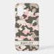 Customize this pink, green and cream camouflage iPhone 17 case with your your name in a trendy modern CAP font in dark green on cream. It's so modern, girly and trendy! Perfect for any country girl!