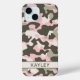 Customize this pink, green, cream camouflage iPhone 15 case with your your name in a trendy modern CAP font in dark green on cream. It's so modern, girly and trendy! Perfect for any country girl!