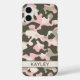 Customize this pink, green and cream camouflage iPhone 16 plus case with your your name in a trendy modern CAP font in dark green on cream. It's so modern, girly and trendy! Perfect for any country girl!