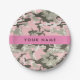 Pink and Green Camouflage Your name Personalise Paper Plate