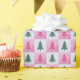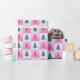 Whether wrapping gifts for family, friends, or loved ones, this wrapping paper ensures your presents are memorable and thoughtfully wrapped. The alternating light and dark pink background gives a unique, dynamic appearance that catches the eye and complements any gift under the tree. The pink and green trees add just the right touch of whimsy and holiday spirit.