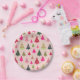 Bright pink and green Christmas tree pattern with stripes and dots.