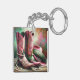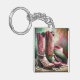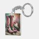 Pink and Green Cowboy Boots with Hat and Pearls Keychain
