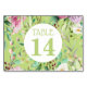 Pink And Green Floral Wedding Table Number Card. Table Number is Visible from both sides.