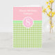 Pink and Green Gingham 8th Birthday Card