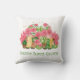 Gnome Sweet Gnome throw pillow in pink and green floral and cactus with adorable gnomes.