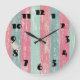 Pink and Green grunge stripes texture Large Clock