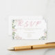 Pink and green leaves and flowers, "RSVP" Enclosure Card