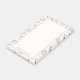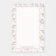 4x6 large sized sticky notes with your custom name inside an eggshell white coloured frame with a pink border. The backdrop is a pattern of hand drawn pink wildflowers with long green stems and leaves on an eggshell white coloured backdrop. Pink circles and sprigs also decorate the design. Whimsical and pretty floral design.