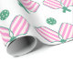 This birthday wrapping paper features a pattern of pickleball paddles. Colours include pink and green.