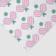 This birthday wrapping paper features a pattern of pickleball paddles. Colours include pink and green.