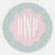 Pink and Green Quatrefoil Monogram Classic Round Sticker