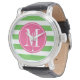Trendy and stripes chevron pattern watch. Write your first name initial on the template to personalise. You can change the green stripes colour by clicking the Customise it button - Edit Menu - Background.