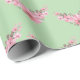 Pale green background and pink pastel floral arrangements scattered throughout the wrapping paper.