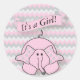 Pink and Grey Chevron Baby Elephant Classic Round Sticker