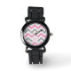 Custom Monogram Glitter watches. Pink and Grey Chevron with personalised Monogram.