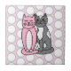 Pink and Grey Cuddly Cute Kitty Cats Ceramic Tile