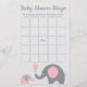 Pink and Grey Elephant Baby Shower Bingo Game Card