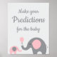 Display our pink and grey elephant themed predictions for baby sign to make sure your guests know to leave their predictions for the new baby. Be sure to look for our coordinating predictions cards sold separately.