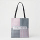 Pink and grey plaid patchwork personalised Tote Bag
